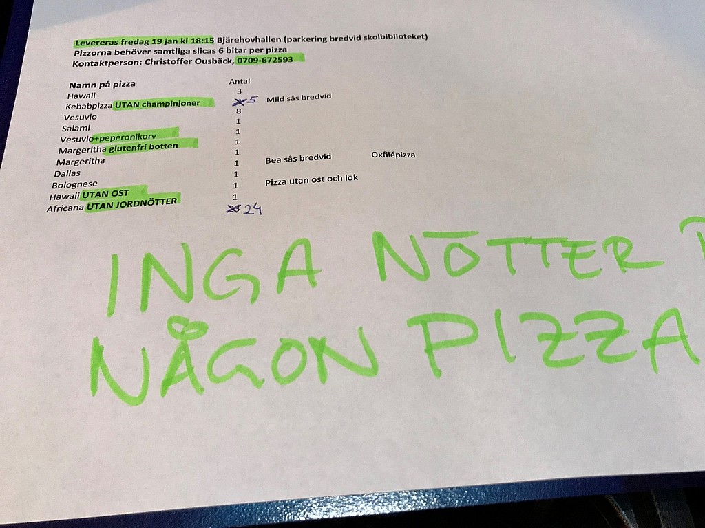 Mums....24 pizzor kommer levereras på fredag till Bjärehovshallen...! :-)