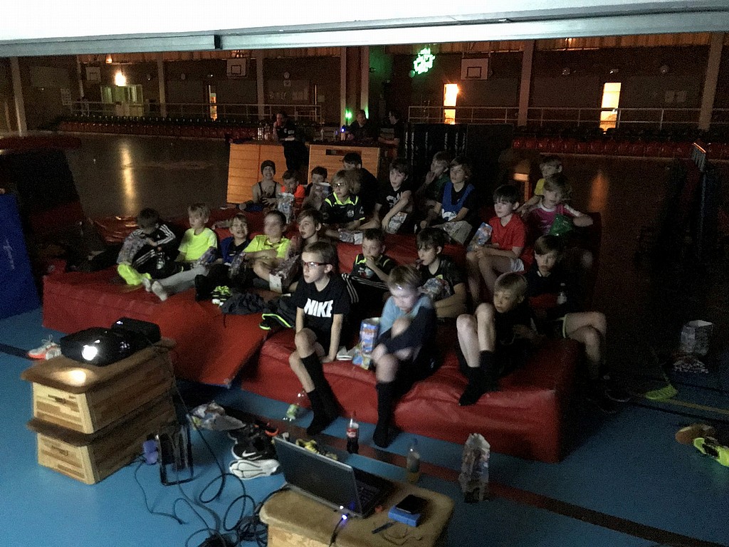 Fokuserade grabbar efter en liten kisspaus mitt i filmen.....spännande att se USA vinna över Sovjet 1980 och ta OS-guld! Klockan är ca 22:30 när detta foto togs :-). Helt tyst blev det först ca 00:30...
